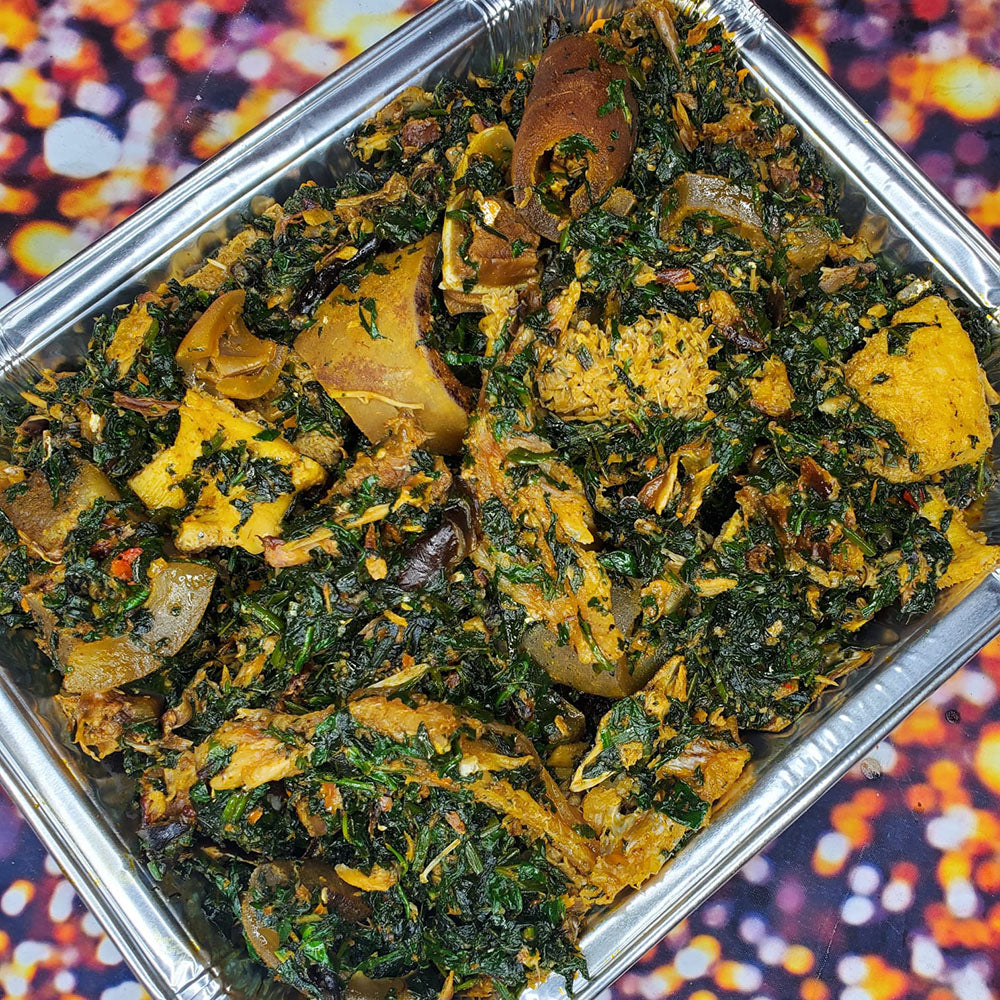 - 1 liter of thick, fresh Edikaikong soup prepared with love.